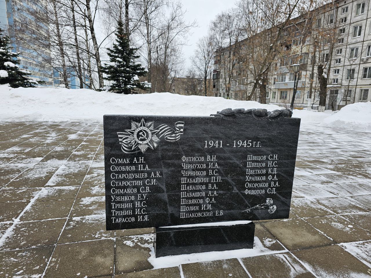 Материал обелиска - мрамор. В пофамильно списке памятника 51 имя.